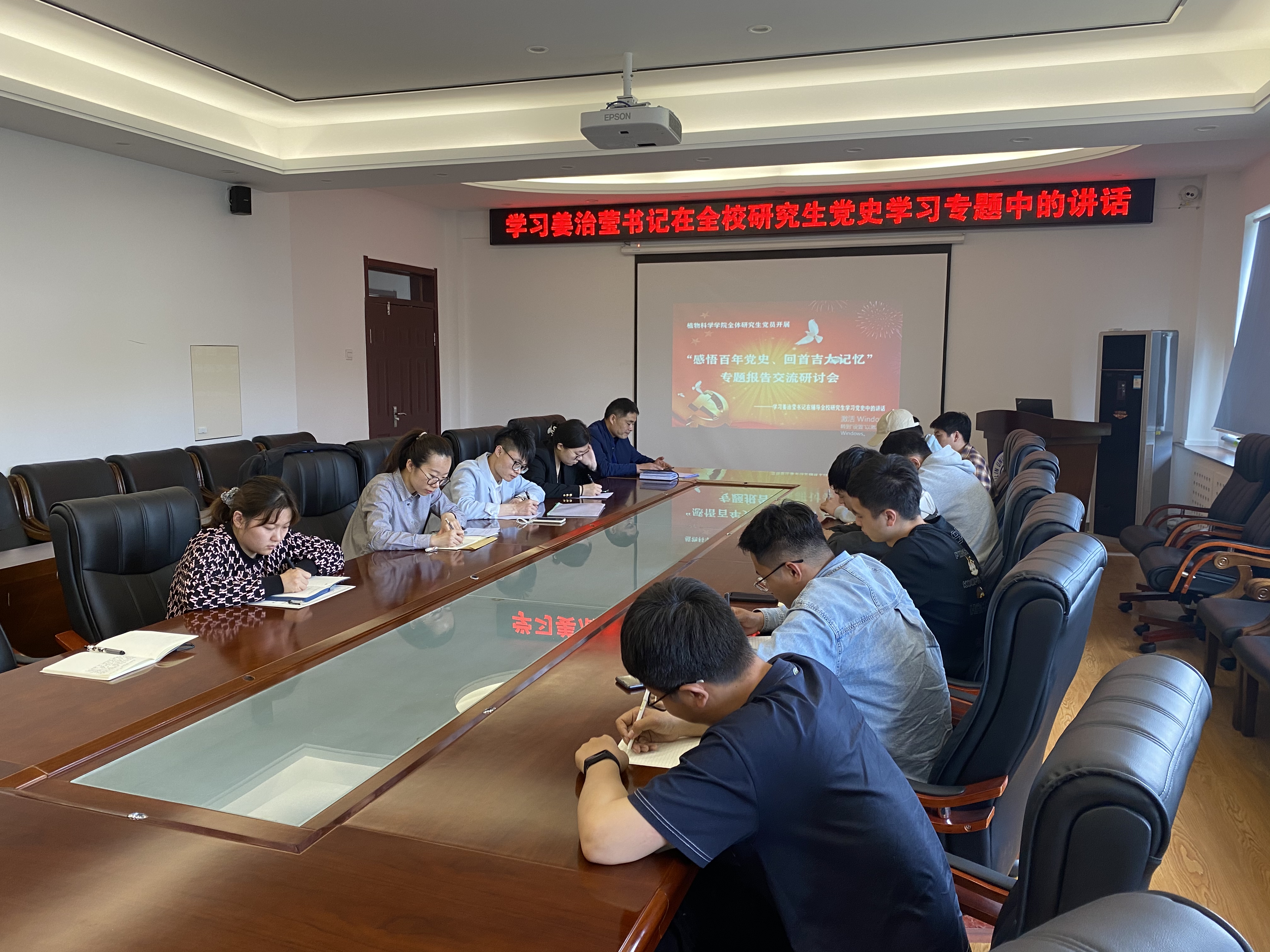 为迎接中国共产党成立100周年,落实党中央关于在全党开展党史学习教育的工作部署,让广大研究生更好地学党史、知校史,更深入了解公司先贤与党同心、与国同行的故事,贯彻落实校研究生工作部召开的“感悟百年党史 回首吉大记忆”研究生党史学习教育专题活动精神,公海gh555000aa线路检测于2021年6月3日下午14:00,在公司四楼会议室召开了“感悟百年党史、回首吉大记忆”专题报告交流研讨会,学院研究生辅导员邓松、研究生党员代表和研究生干部代表等人出席了会议。