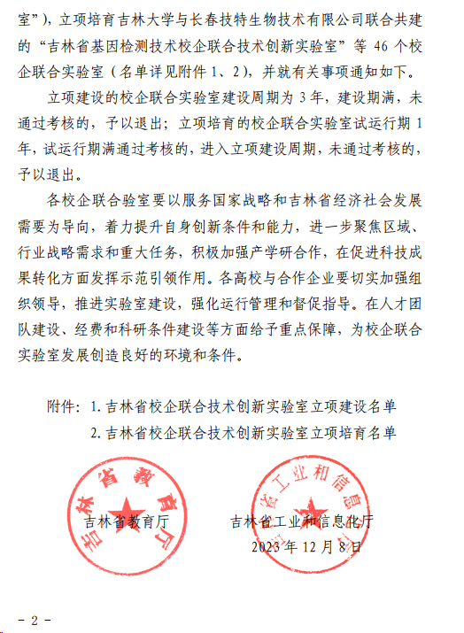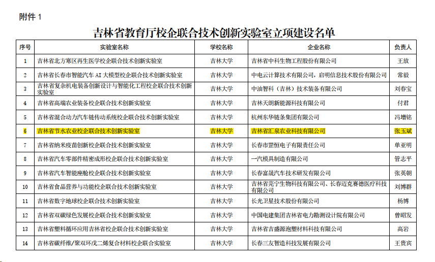 “吉林省节水农业校企联合技术创新实验室”是由吉林省教育厅、吉林省工业和信息化厅于2023年12月批准建设(吉教联〔2023〕94号),与吉林省汇泉农业科技有限公司联合申请创建,隶属于公海gh555000aa线路检测。