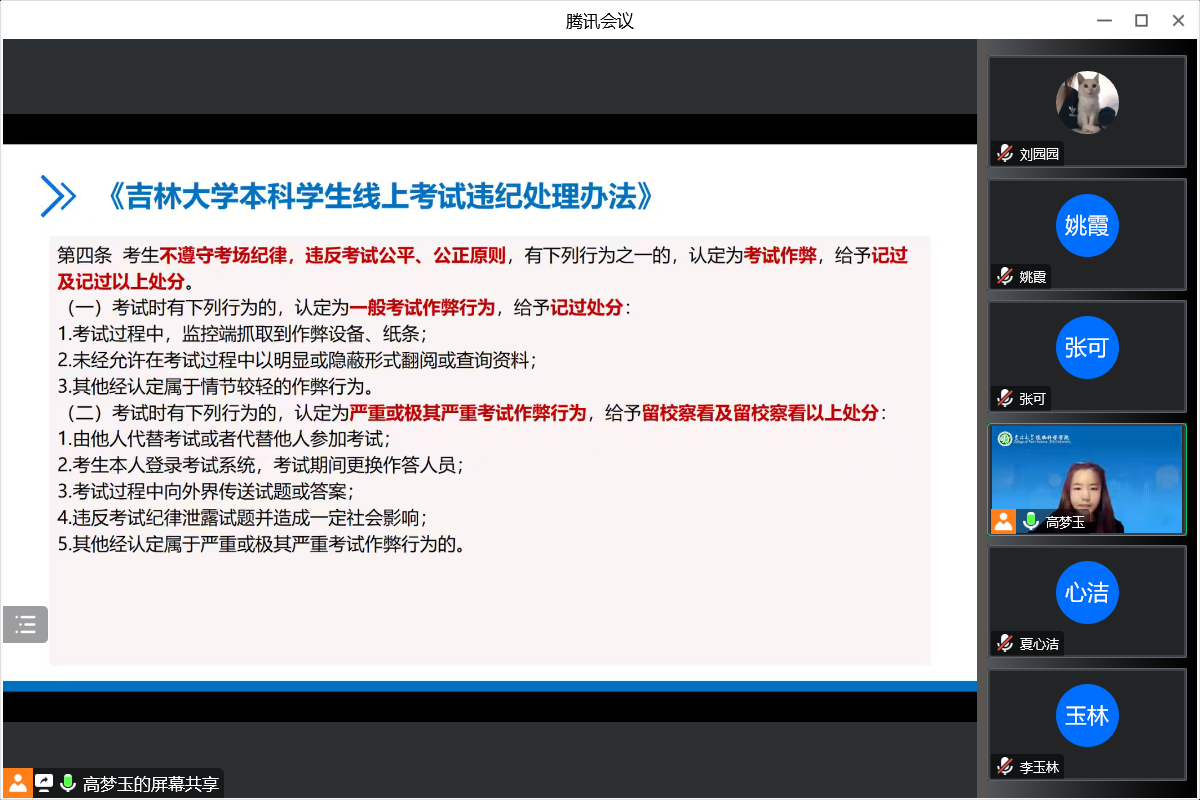 为进一步加强学风、考风教育,严格考试管理,严肃考试纪律,营造文明、诚信考试的良好氛围,提高员工的道德修养和思想素质,12月20日—22日,公海gh555000aa线路检测各年级召开考风考纪教育大会。会议由2019级、2020级辅导员曾光,2021级、2022级辅导员高梦玉主持,各年级全体本科生线上参会。