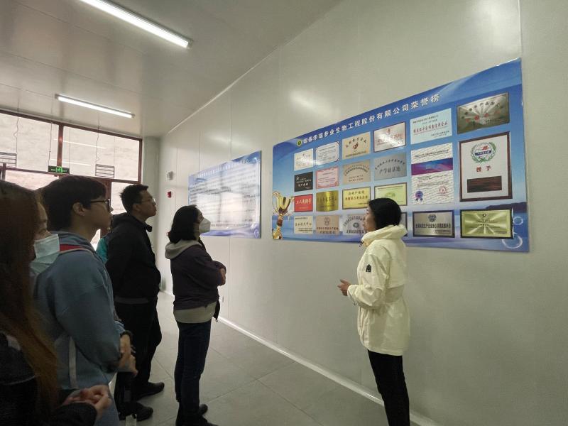 随后,调研组一行前往珲春华瑞参业生物工程股份有限公司进行参观调研。期间,华瑞参业副总经理赵俊东就企业基本情况、企业文化、代表性产品等方面展开介绍。据介绍,珲春华瑞参业生物工程股份有限公司是一家集种植、养殖、研发、生产、销售于一体的,有着完备产业链条的现代化高科技股份集团企业。公司从人参种植起步,在继承和弘扬中华民族养生文化和“药食同源”文化的过程中,不断挖掘和利用中医药文化的精髓,综合开发利用长白山人参这一特殊资源,研发生产出人参系列产品。在参酒酒窖,调研组详细了解了人参酒加工工艺。