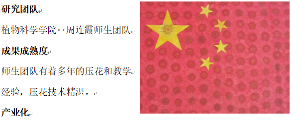 产业立足于园艺植物的观赏性,将天然植物与文化创新相结合,让更多人感受到植物科学与艺术结合的魅力。产品以自然界植物为原材料,通过采摘其根、茎、叶、花和果实等部位,用物理或化学等干燥法脱水处理,将植物本身具有的天然形态、自然色泽和奇妙纹理巧妙地保留起来,将压制好的平面花材,经设计构思粘贴在各种衬物上制成精美的艺术品。产业在花艺创作的基础上,以能长久保存花艺产品的观赏特性、纪念价值和意义以及压花教学带来的心理疗法作为产业发展思路。产业定位为文化创意产业中的手工艺品制造,做结合中国传统文化特色和时代精神的压花手工艺品,以及建立使顾客解压、舒缓心情等作用的压花休闲教学。本团队在第二届全国农科学子创新创业大赛“未来农业”奇思妙想创意赛道东北赛区三等奖、2020年公海gh555000aa线路检测老员工生命科学创新创业大赛一等奖、2020年公海gh555000aa线路检测老员工创新创业校赛互联网+赛道铜奖等。