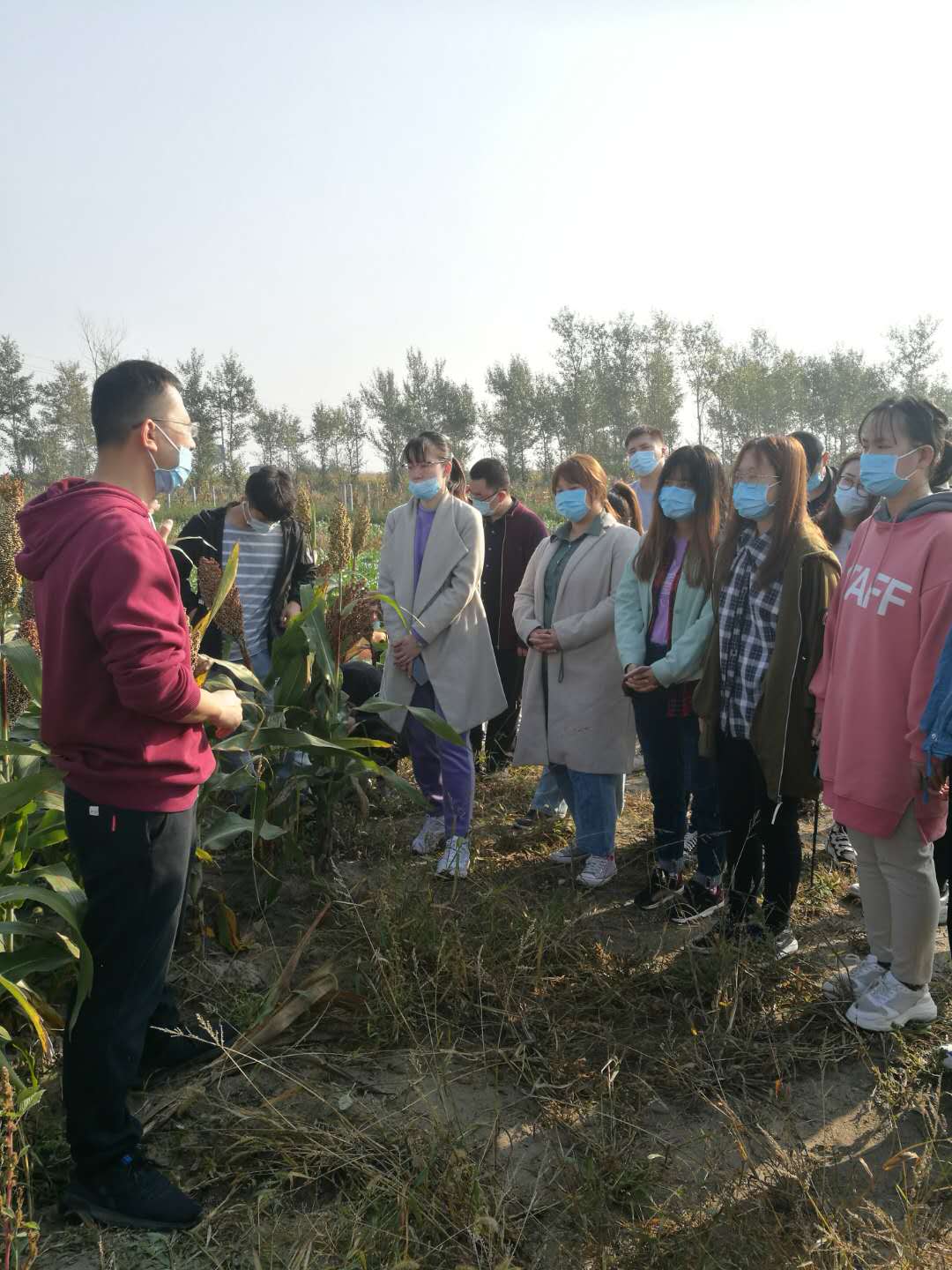 9月25日上午,资环班级员工前往乌兰花镇春阳村扶贫科技小院示范田,在小院研究生刘烁然对科技小院帮扶模式、种植大户王天禹以及贫困户陈海军对小院帮扶成果的介绍下,了解到“校、政、企、农”高度融合对贫困户“志智双扶”,并取得了显著的效果,以科学合理的帮扶模式促进农田增产、农民增收。