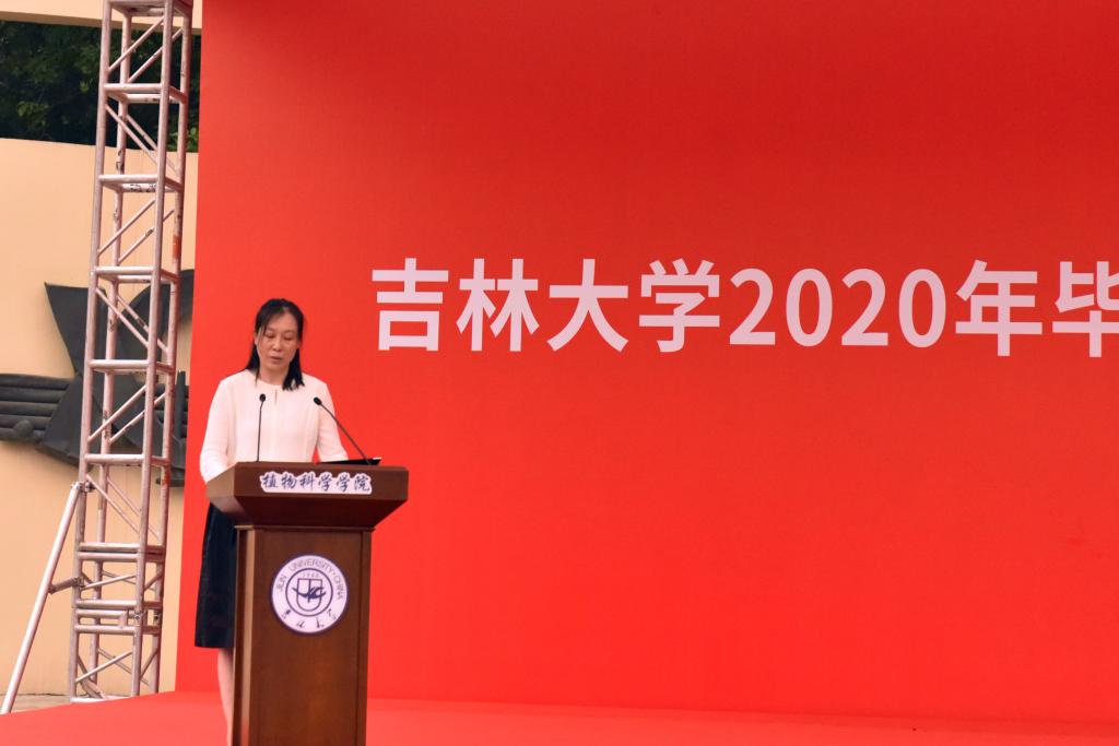 公司教学委员会主任委员、2020届毕业班班主任边鸣镝教授发言。她希望同学们在生活的中洪流滚滚向前,做好再扬帆起航的准备,“我既盼你们幸运加持、顺遂一生,也望你们波澜壮阔、峥嵘岁月,不管怎么样,你们一定要带着对自己过往生活的反思,要不断的自省,在失败中的伤痛里汲取战胜暴风雨的力量,让过往所有的遗憾都化作未来惊喜的铺垫,朝着我们的目标,星夜兼程,总有一天你会成为最美的自己。”