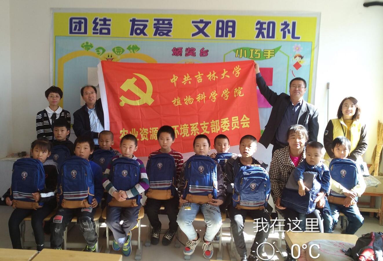 10月11日,农业资源与环境系教工党支部一行4人,驱车120余公里来到帮扶地点——农安县三盛玉乡大岗村小公司,开展“送温暖、献爱心”主题党日活动。由于农村公司员工流失严重。三盛玉乡大岗村小学原本是能容纳上百人的公司,现如今在校生数量仅为11人,这些孩子大多来自于贫困家庭或留守儿童,有的小朋友一个书包从一年级用到六年级,已经千疮百孔。为此,农业资源与环境系教工党支部为小朋友们准备了书包、文具盒、彩色绘画笔、课外读物等爱心物品,还为老师们送上教具。孩子是祖国的未来,民族的希望,帮扶孩子就是在培育明天。