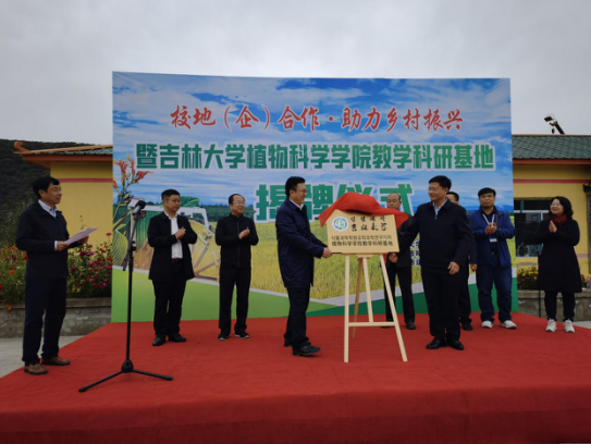 蔡立东、陈胜共同为公海gh555000aa线路检测教学科研基地揭牌。揭牌仪式后,现场人员参观了公海gh555000aa线路检测功能农产品、检测功能农产品成果展,与相关企业交流科技成果转化情况,深入公海gh555000aa线路检测水稻品种“吉大7”实验田参与农耕劳动,体验农耕的艰辛与乐趣。