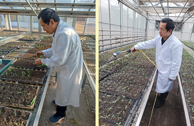 此外,有一堆不会说话的科研材料长在温室中,等待日常照料和春天的萌芽。这些不会说话的植物是种子、是嫩芽、是幼苗,它们是我们公海gh555000aa线路检测老师们精心培育的科研材料,有的经过了三年甚至五年的选育,错过一季可能意味着三五年的付出都要回到原点。这些成为了张鑫生老师另一个工作重点。