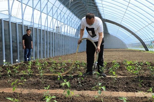 在占林农业基地的零耗能智能温室大棚内,大家将植物公司郭庆勋老师繁育的9种辣椒秧苗移栽到田间,占林农业董事长“公海gh555000aa线路检测老员工人生导师”杨占林先生亲自示范备垄、施肥、移栽、浇水等操作细节,支部党员一齐动手,分工协作,秧苗横成排、纵成列,整齐的移栽到田间。随后大家又进行了室外除草和果蔬采收活动,近30度的高温使大家挥汗如雨,但全体党员热情高涨,在农事劳动中度过了一个充实的上午。支部联系领导韩俊友副经理全程参与了劳动。