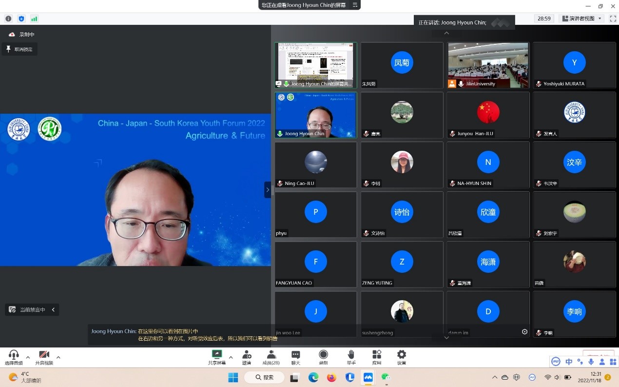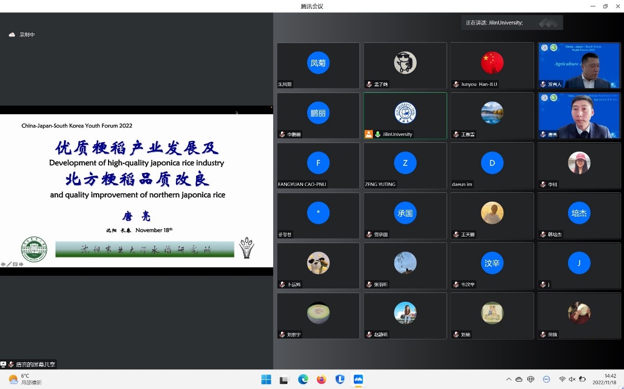 11月18日,由公海gh555000aa线路检测承办的2022年公海gh555000aa线路检测“中日韩青年论坛”在公海gh555000aa线路检测二楼多功能报告厅线上线下同步举行。本次论坛主题为“粮食与未来”,来自韩国世宗大学、日本国冈山大学、中国北京大学、东北农业大学、沈阳农业大学、公海gh555000aa线路检测共6所国内外高校和研究机构的专家与青年学者、员工近200余人参与了此次论坛。