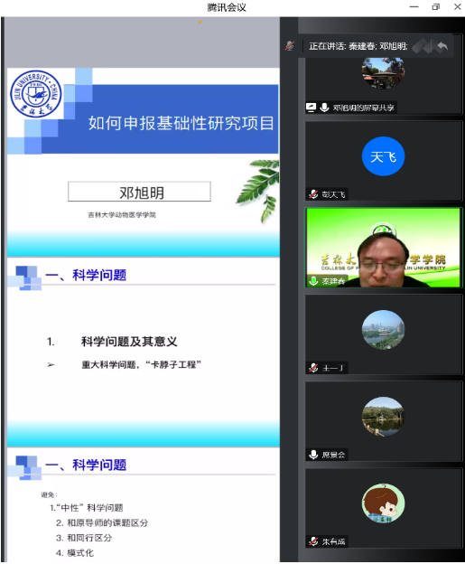 随后,公海gh555000aa线路检测动物医学公司邓旭明教授做了“如何写好国家自然科学基金申请书”的报告,邓老师针对国家自然科学基金拟题技巧、摘要凝练、选题依据科研“故事”逻辑讲述、内容创新点突出以及研究基础提升可行性等方面做了深入分析。邓老师还建议老师们平时多跟同行学术交流,增强同行认可度,提高学术影响力。整个报告内容和经验分析讨论鞭辟入里,通俗易懂,参会老师受益匪浅。