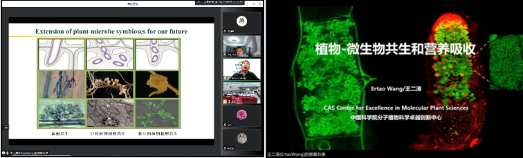 在自然界中,植物周围充满了病原微生物和有益微生物。植物为了生存需要识别这些微生物,并启动相应程序与有益的共生微生物建立共生。其中“植物-菌根真菌”与“植物-根瘤菌”是自然界两种最为广泛、重要的共生形式。王二涛老师团队长期从事植物与菌根真菌以及根瘤菌共生关系的调节机制研究。本次报告王老师聚焦植物-丛枝菌根真菌共生关系的研究成果,在此基础上延展至豆科植物-根瘤菌共生固氮的分子机理研究。