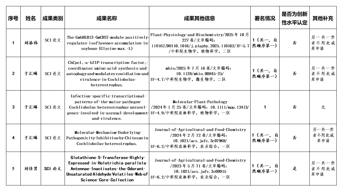 现将本次申请答辩博士研究生的学术成果公示如下,公示期:(