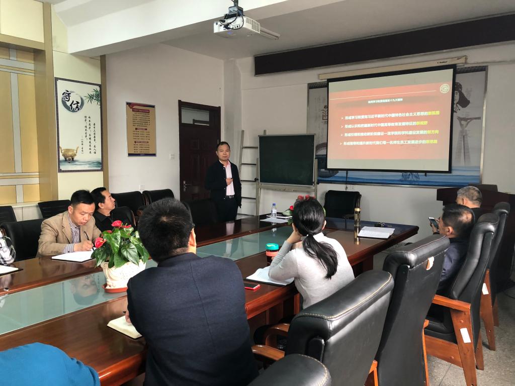 会上,按照党委工作安排,由马利凯副经理作题为《学习十九大精神 凝心聚力求发展 深入推进公司一流团队建设》的主题发言。围绕党的十九大重要认识与高等教育发展形势、国家与公司“双一流”建设整体情况,“双一流”背景下综合性大学涉农团队建设思考等三个方面进行了学习汇报。