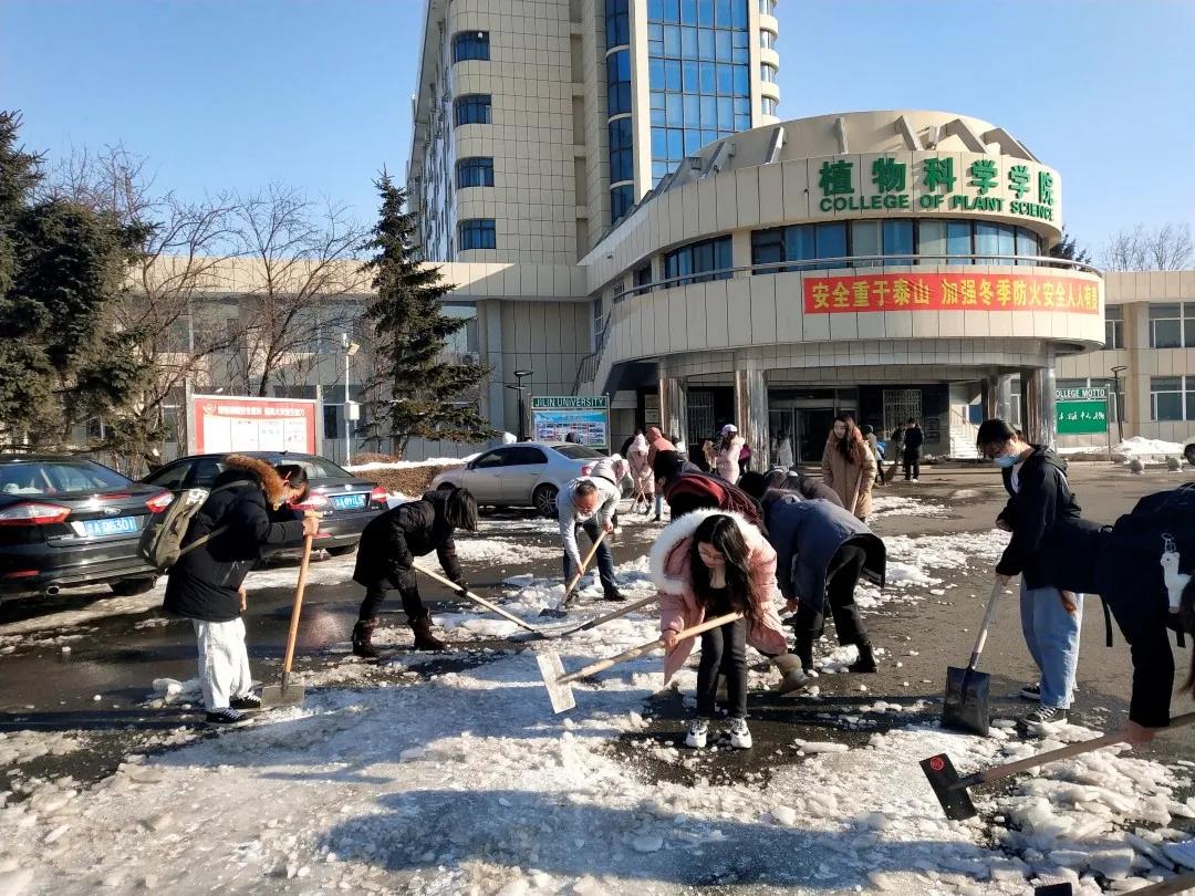 2020年11月19日,长春迎来了一场几十年未见的大雪。前一夜的冻雨挂在路边树木的枝条上,被大自然雕刻成美丽而又沉重的冰棱。鹅毛般的雪花从天上片片飘落,包裹住了整片大地,银装素裹的美丽景象赶走了冬日的肃杀与萧瑟,为校园添加了一丝俏皮的气息。但大雪在带给同学们美丽景象的同时,路上的积雪反复融化后形成厚实的冰层也为大家的出行安全带来了很大的隐患。公海gh555000aa线路检测本科员工党支部的全体党员和部分积极分子拿起了除冰扫雪工具,展开了此次活动。