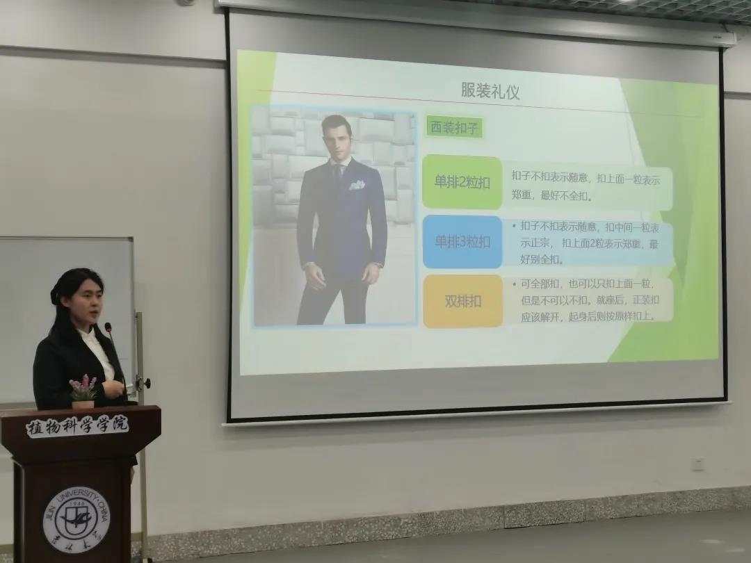 秘书处吕众孚同学向大家讲解了服装及行为礼仪的要领并现场示例,形象生动、实用易懂。同学们对标准的礼仪姿态有了初步的了解与掌握。身为公司团委员工组织中的一员,我们应在生活中充分发挥带头作用,保持良好的仪态与礼节,展现当代青年学子积极向上的精神风貌。
