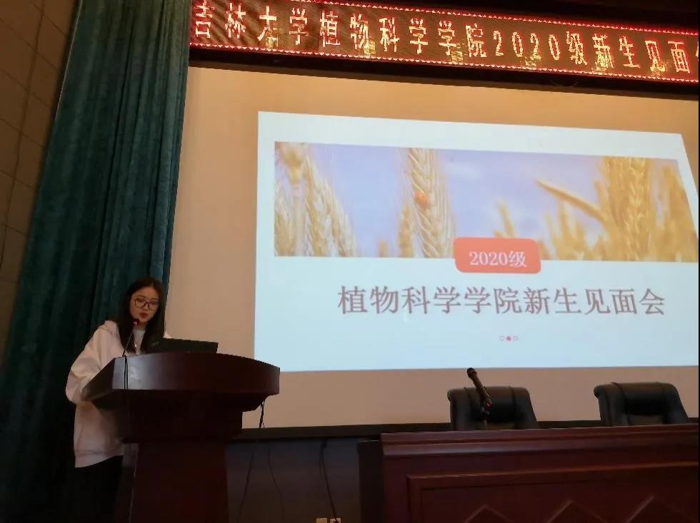 随后,2020级本科生张婧妍同学作为新生代表上台发言。谈及为期十五天的军训生活,她表示同学们的意志品质得到了极大的锻炼。在未来四年的老员工活中,她有信心与同学们一起认真学习、严于律己,传承吉大“红白黄”三源色精神,为伟大的奋斗目标而努力。