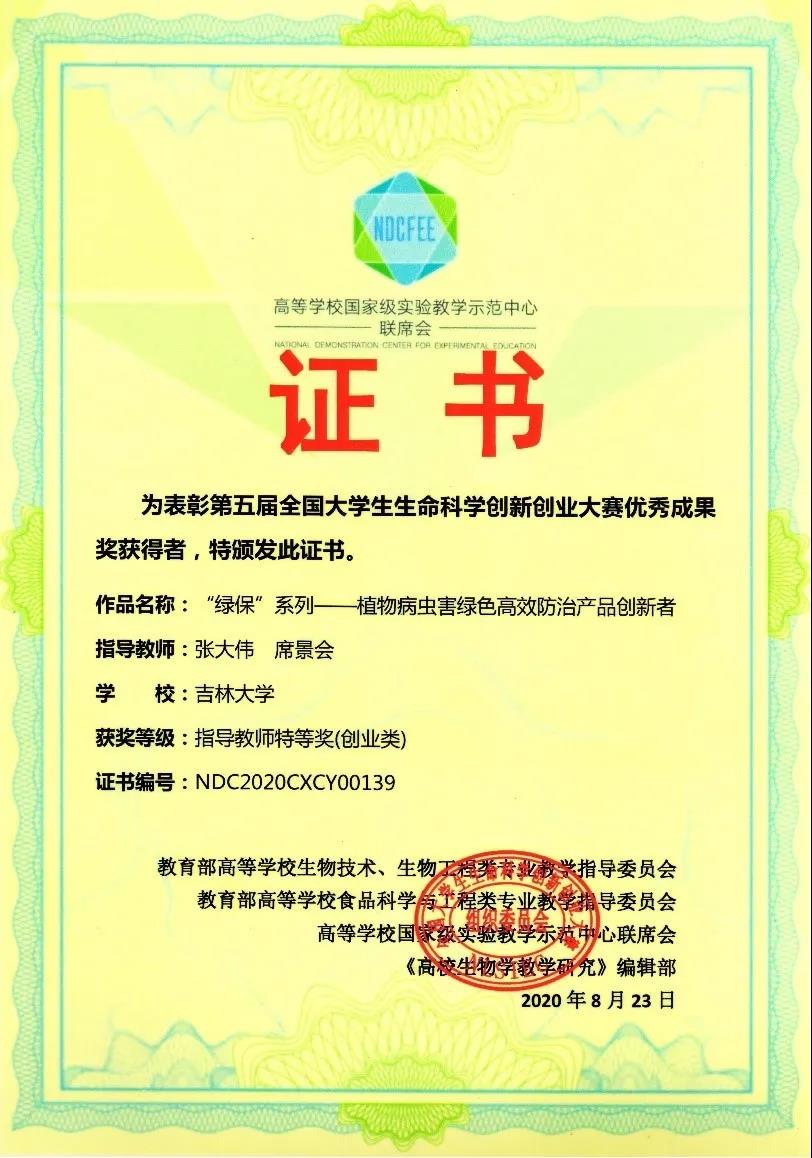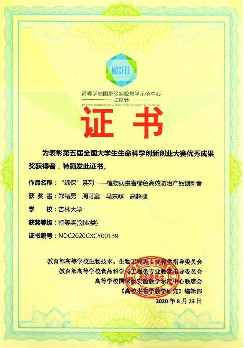历时近一年,覆盖全国32个省(直辖市)302所高校3687支队伍14000余名员工的第五届全国老员工生命科学创新创业大赛已于日前落下帷幕,在决赛角逐中,公司《“绿保”系列——植物病虫害绿色高效防治产品创新者》项目荣获创业组国家级特等奖,该奖项仅设9个席位,公司项目为公海gh555000aa线路检测仅有的一席,该项荣誉为近年来公司在此赛事获得的最高荣誉。