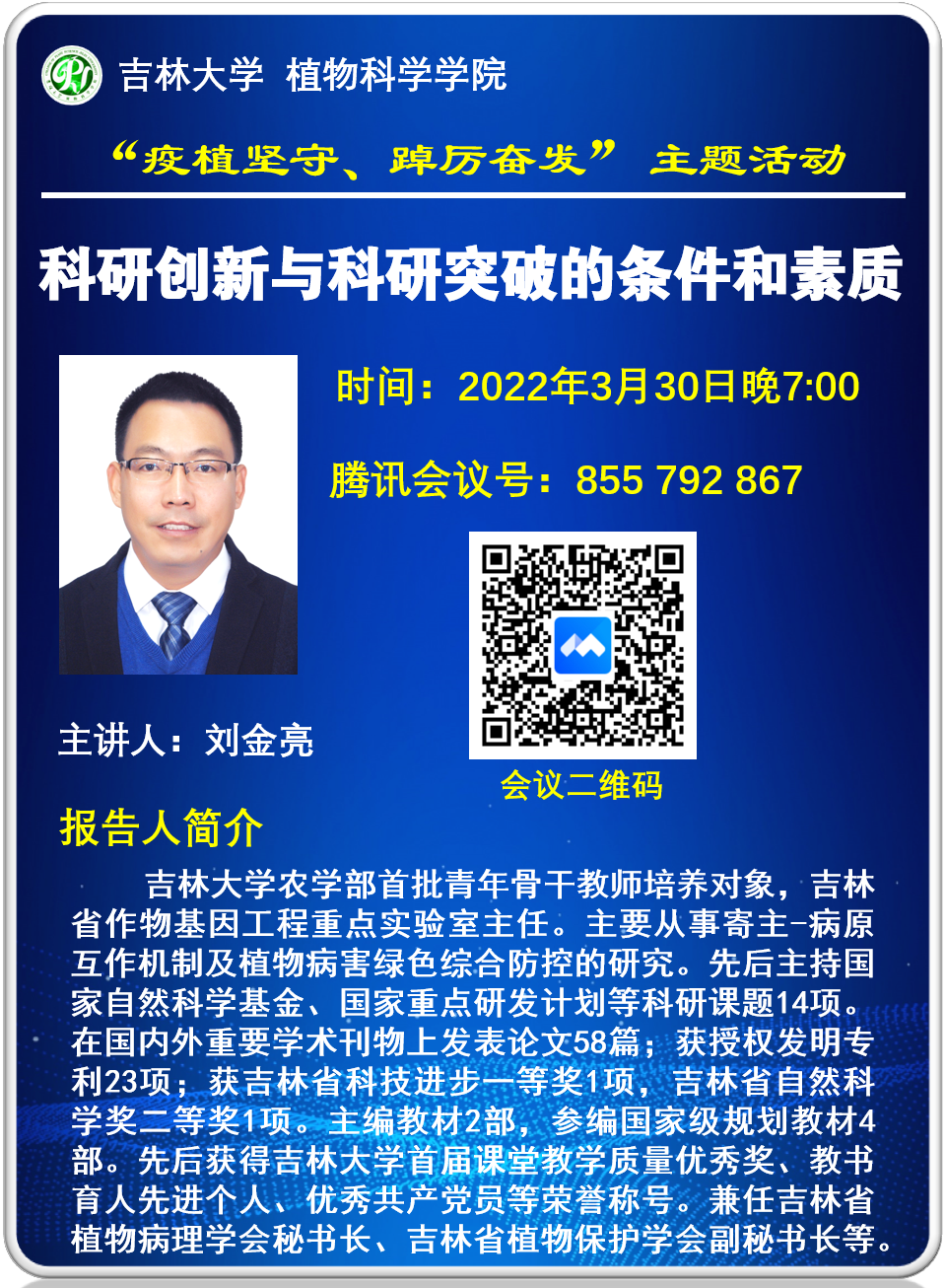 公海gh555000aa线路检测“名师之光”学术报告第36期"The light of famous teachers" Academic Salon of College of Plant Sciences (36)束