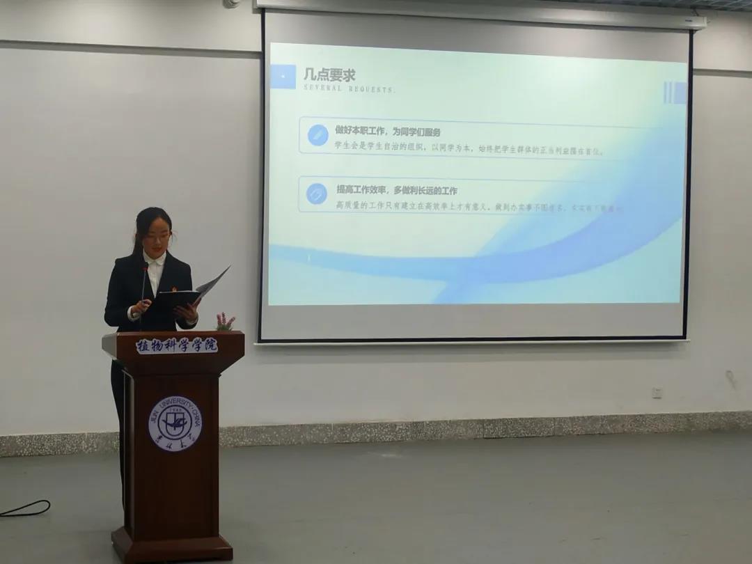 会议伊始,工作人员播放了第十四届团委员工会工作成果展示视频,视频展现了各部成员认真负责的工作态度以及取得的优异成绩。一张张照片缓缓播放,叙述着过去一年工作中的无数欢笑与泪水、拼搏与感动,令在座的老师同学十分动容,同时也激励着20级的同学们在今后的员工工作中团结友爱、积极认真。