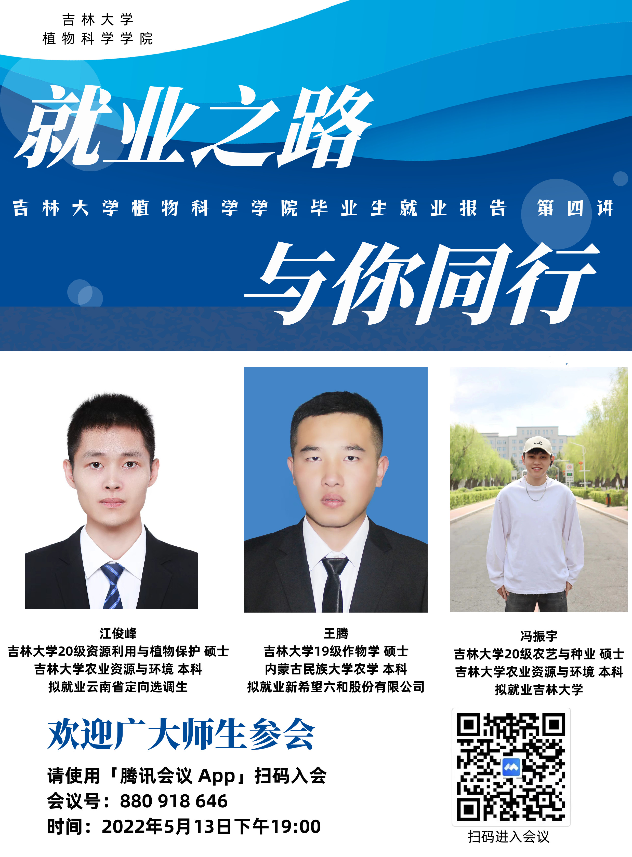 迟日江山丽,春风花草香,在这个生机盎然的季节,毕业的脚步声悄然而至。公海gh555000aa线路检测为培养员工求职意识,扩大研究生就业面,建立择岗择业观念,了解就业形势,熟悉专业对口单位,掌握应聘技能,公司于2022年5月13日晚6:00,举办了第四期优秀毕业生代表线上分享会,分享会有幸邀请了三位即将毕业踏上工作岗位的优秀研究生代表参加,并针对本科生及研究生的就业问题进行了经验分享和交流,会议由植科院研究生辅导员邓松老师主持。