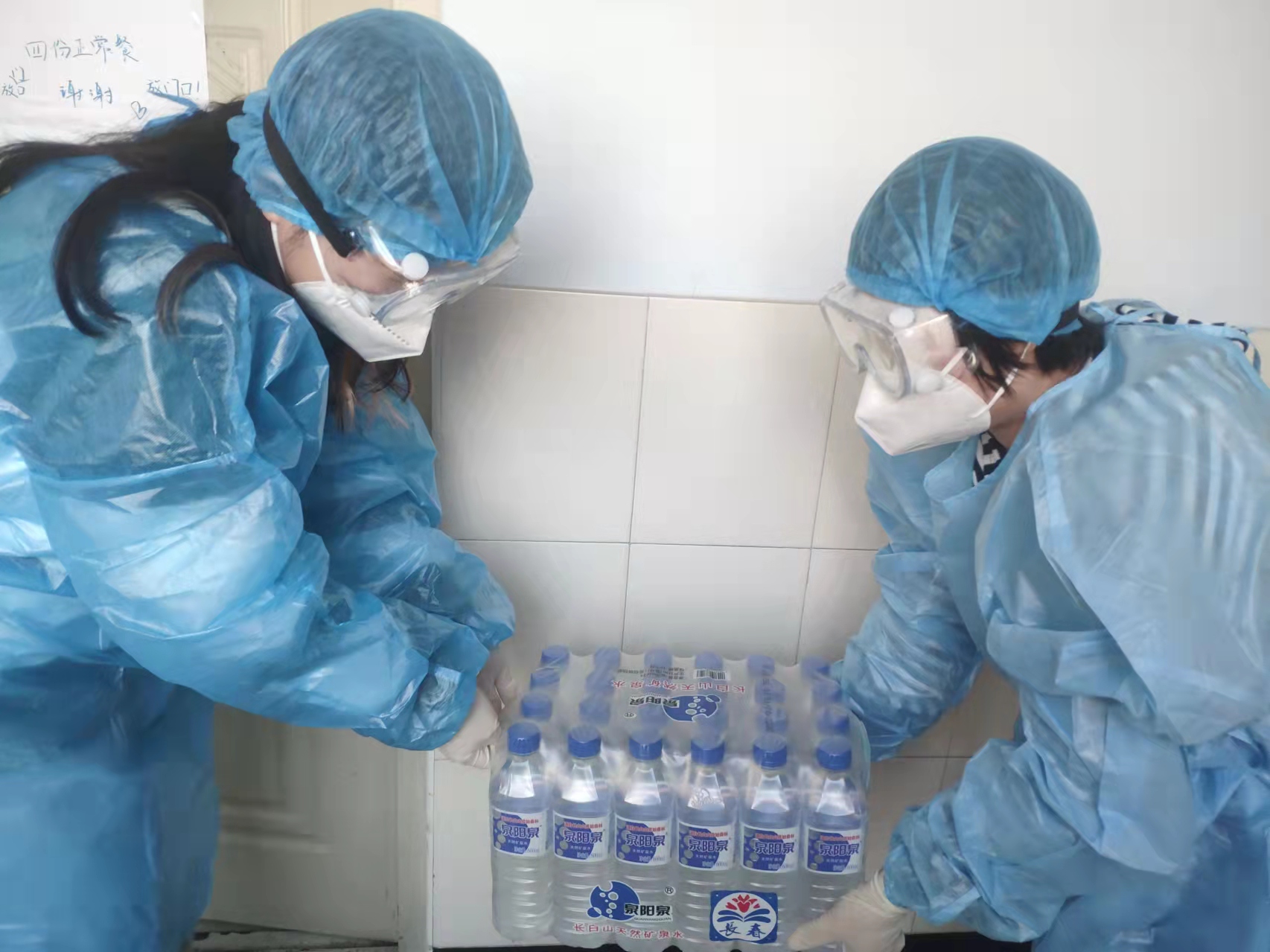 志愿者们齐心协力、与其他公司志愿者们共同参与楼层的志愿任务。李兰慧同学表示“作为志愿者,我们一起以平凡之心、平凡之力,在平凡的岗位上做着不平凡的事,我们定会以不怕苦不怕累的精神服务同学,全力做好同学们的生活保障工作。”