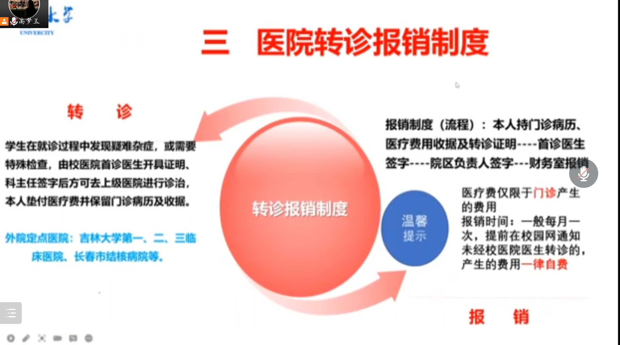 讲座过程中,阙宁老师详细介绍了校医院概况、员工医疗证的发放与使用、医院转诊与报销制度,让同学们充分了解了公司就医、医保报销、传染病预防等方面的相关信息。随后讲述有关大学健康教育课、应急救护培训等课程内容,让同学充分意识到健康教育的重要性。讲座的最后阙宁老师以简洁易懂的语言讲述有关新冠肺炎、艾滋病、结核病、水痘、病毒性肝炎等常见传染病的防治方法,加强有关防范传染病的卫生意识。