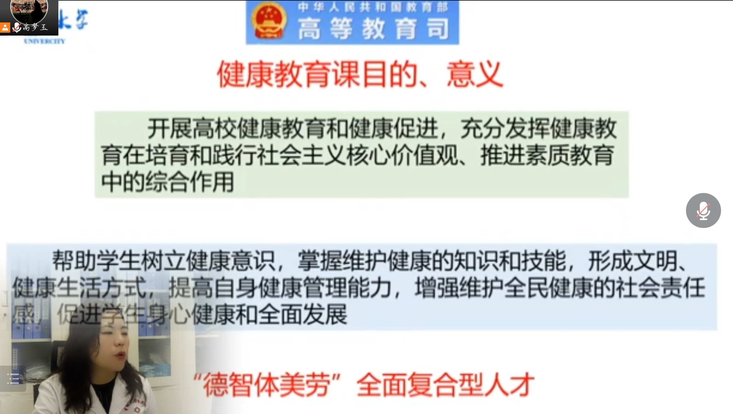 为帮助新生树立健康意识,提高自身健康管理能力,8月31日公海gh555000aa线路检测全体2022级本科生于线上收看由校医院的阙宁老师主讲的卫生健康教育专题讲座。
