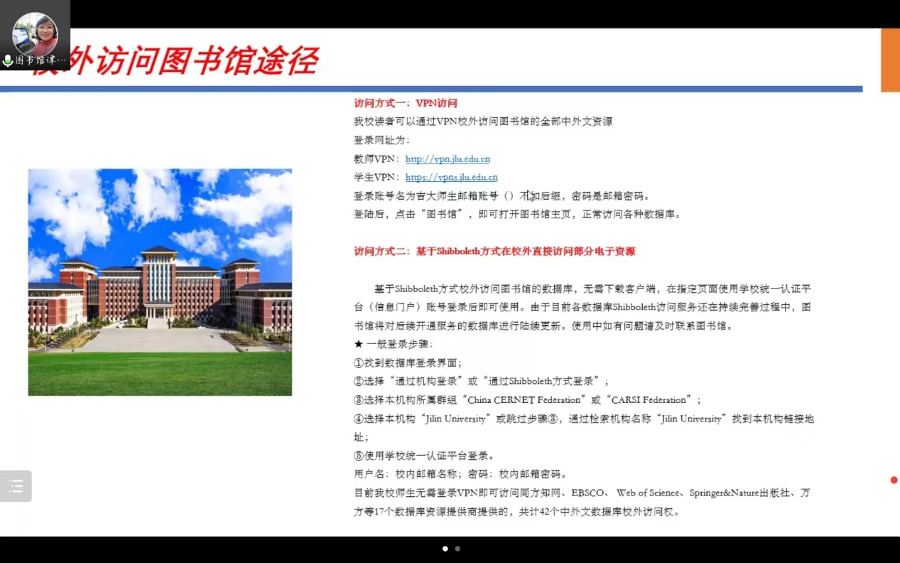 会议首先介绍了公海gh555000aa线路检测和平校区图书馆(农学馆)馆藏资源、开馆时间等基本概况,加深同学们对于图书馆的了解。介绍图书馆官网访问途径与相关信息服务的使用方法,谭智敏老师以“攻略”的形式生动介绍了如何借阅图书、归还图书、续借图书、查找数字资源。讲座过程中谭智敏老师借助实例使同学们对借阅流程更为熟悉。