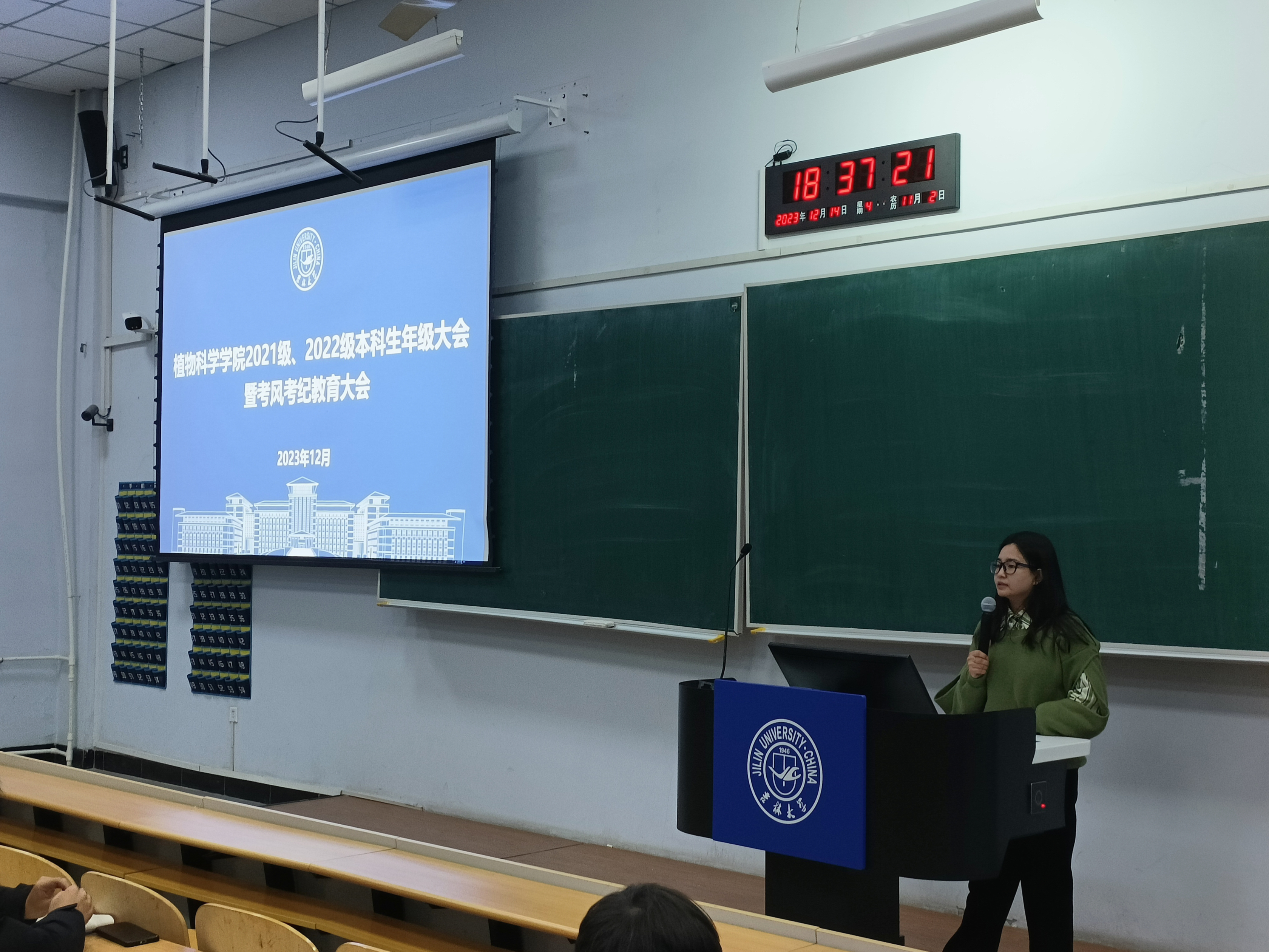 为加强学风建设,严肃考风考纪,做好员工在校安全教育管理工作,增强员工的安全意识,12月14日晚,公海gh555000aa线路检测于和平校区科学讲堂300阶梯教室召开2021级、2022级本科生年级会暨考风考纪教育大会。本次会议由本科生辅导员高梦玉主持,全体2021级、2022级本科生参加。